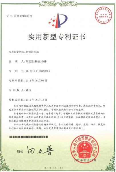 2、缩短了颗粒沉降距离,从而缩短了沉淀时间;